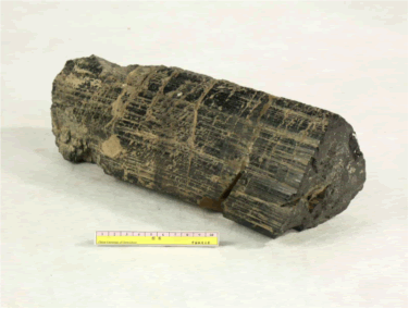 圖G-26 電氣石晶體呈柱狀、柱面上出現(xiàn)縱紋